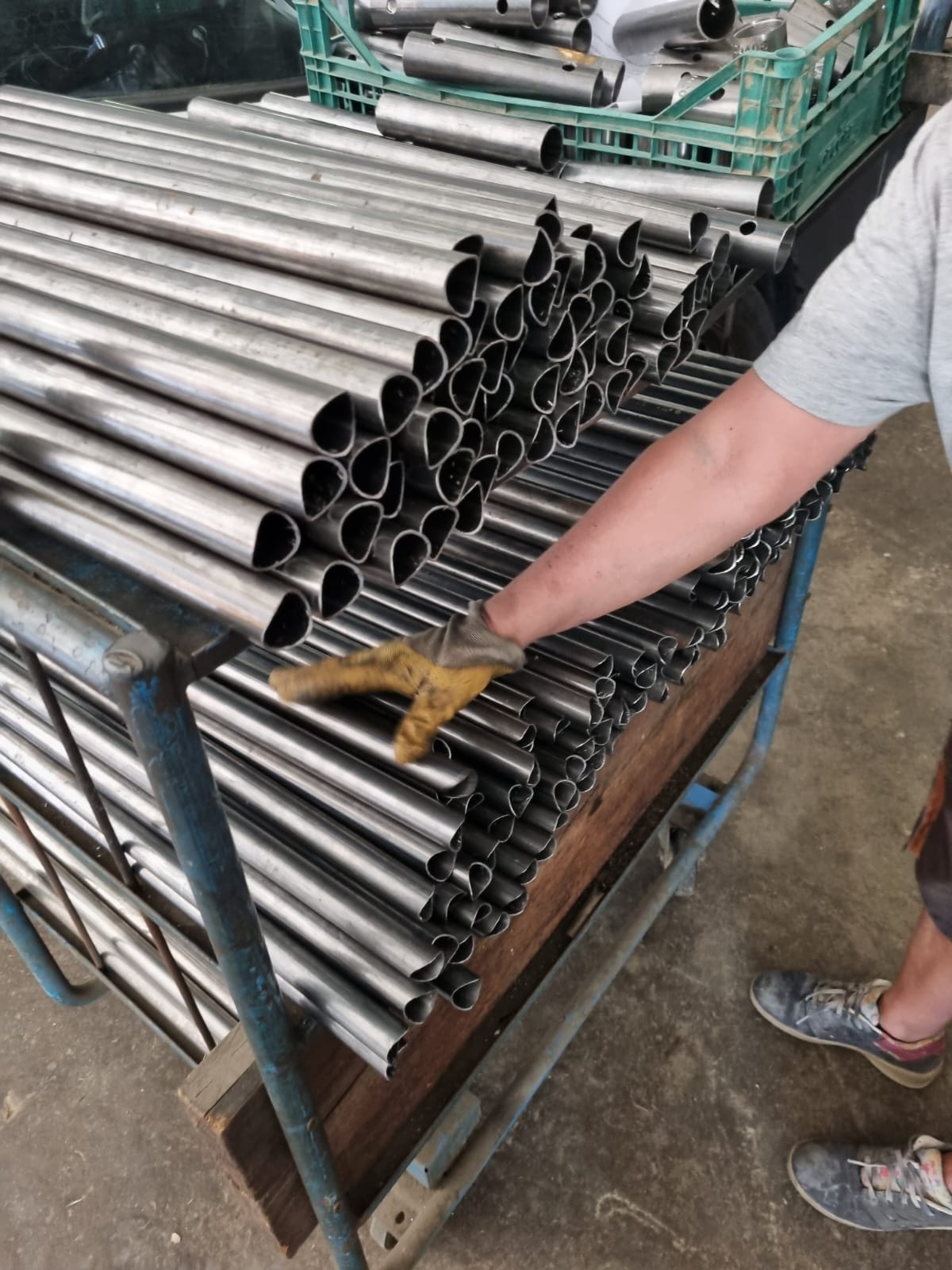 Händisch in Italien hergestellt nach unserem Konzept von einem kleinen Familienbetrieb bestehend aus Vater, Tochter und Sohn. Mit italienischen Rohren, handgemacht von der sympathischen Tochter, die eine der letzten Rahmenbaufirmen in Italien übernommen hat.